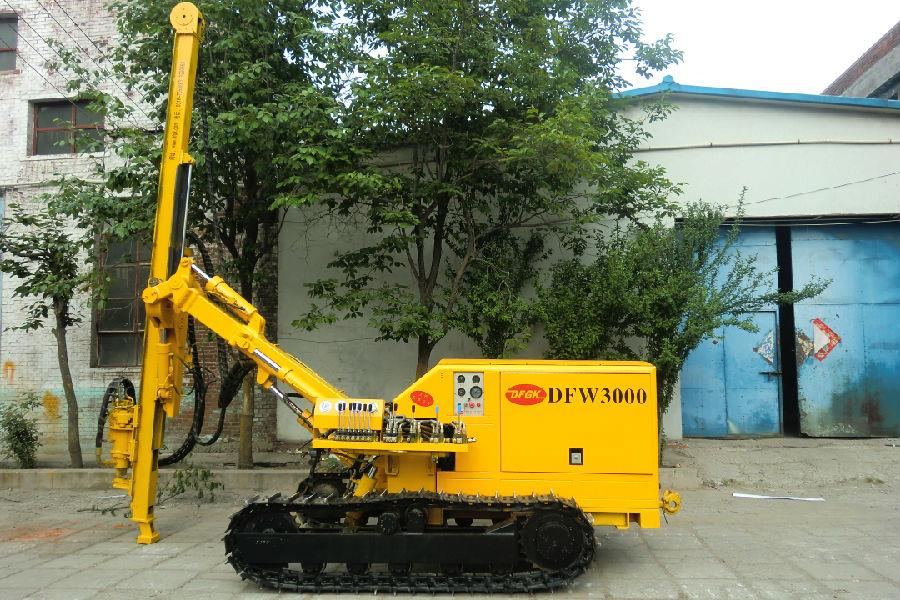 DFW3000型履帶式多角度潛孔鉆機(jī)行走部分采用大功率進(jìn)口液壓馬達(dá)驅(qū)動,驅(qū)動力大,爬坡能力強(qiáng);結(jié)合多角度鉆臂,孔位范圍更寬;全液壓履帶式鉆機(jī)適用于露天礦山邊坡處理鉆孔作業(yè),邊角礦體處理鉆機(jī)作業(yè)及各類石方工程鉆鑿爆破孔作業(yè)。